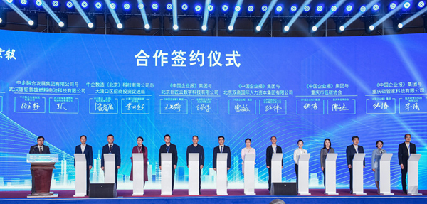 會議還舉行了集中簽約儀式?!吨袊髽I(yè)報》集團與航天科工海鷹集團有限公司、北京巨匠云數(shù)字科技有限公司、北京雙高國際人力資本集團有限公司、重慶市低碳協(xié)會、重慶碳管家科技有限公司,中企融合發(fā)展集團有限公司、武漢雄韜氫雄燃料電池科技有限公司,中企數(shù)造(北京)科技有限公司與大渡口區(qū)政府分別舉行了合作簽約儀式。下一步,《中國企業(yè)報》集團將與簽約各方進行深入長期的合作,為促進產(chǎn)業(yè)升級發(fā)展和政企互動合作夯基礎(chǔ),建平臺,增動力。