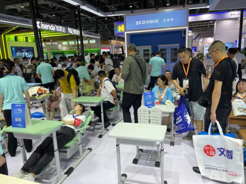 在今年的兩會上,不少人大代表提出在全國中小學(xué)推行“趴睡”變“躺睡”,充分保證中小學(xué)生實(shí)現(xiàn)優(yōu)質(zhì)午睡的建議,本次展會中科達(dá)的午休課桌椅便給出了解決方案。作為中科達(dá)全新推出的重點(diǎn)產(chǎn)品,午休課桌椅是第一次帶到全國觀眾的面前,一經(jīng)推出,立即聚焦全場,引起了現(xiàn)場觀眾們的圍觀點(diǎn)贊。大家都對這個新產(chǎn)品新概念表達(dá)了濃厚的興趣,仔細(xì)的詢問每一處產(chǎn)品細(xì)節(jié),紛紛躺在午休課桌椅上去親身體驗(yàn),并在體驗(yàn)后對午休課桌椅的創(chuàng)新性、實(shí)用性和舒適感交口稱贊,表示午休課桌椅從關(guān)愛學(xué)生的角度出發(fā),很好地解決了長久以來困擾著學(xué)生午間休息的難題。幫助學(xué)生們實(shí)現(xiàn)了從“趴睡”到“躺睡”的轉(zhuǎn)變,使學(xué)生們的午間休息效果大大增強(qiáng)。讓我們一起來回顧現(xiàn)場的一些精彩瞬間。