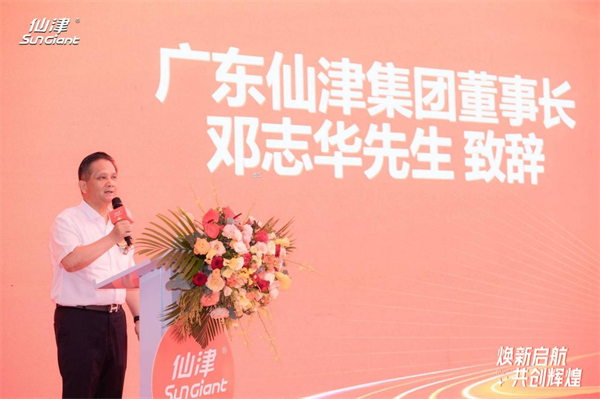 伴隨現(xiàn)場(chǎng)熱烈的掌聲,廣東仙津集團(tuán)有限公司董事長(zhǎng)鄧志華先生規(guī)劃著企業(yè)發(fā)展的新藍(lán)圖?!爸荡思瘓F(tuán)喬遷的重要節(jié)點(diǎn),仙津集團(tuán)將繼續(xù)攜手以匠心堅(jiān)守品質(zhì),以智慧賦能發(fā)展,助力行業(yè)智變向新。今年,我們提出了百億級(jí)的發(fā)展目標(biāo),預(yù)示著我們要朝著更高的目標(biāo)攀登。仙津歷經(jīng)38年風(fēng)雨,蛻變成長(zhǎng)為飲料食品行業(yè)中的佼佼者、食品加工制造業(yè)領(lǐng)域的優(yōu)秀品牌,離不開眾多經(jīng)銷商朋友、合作伙伴的鼎力支持。在喬遷新基之際,仙津集團(tuán)將立足新起點(diǎn),實(shí)現(xiàn)新高度,為集團(tuán)的蓬勃發(fā)展開啟全新征程?!?/p>
