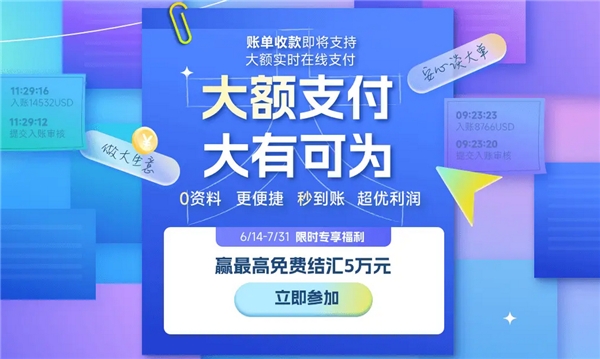 值得一提的是,6月14號至7月31號期間,PingPong福貿展開限時專享賬單收款福利:最高免費提現(xiàn)5萬額度。用戶成功入賬1次可得免費提現(xiàn)券1萬額度;成功入賬3次可得免費提現(xiàn)券3萬額度;成功收取歐洲、北美買家付款且金額≥$1000,可得免費提現(xiàn)券1萬額度。