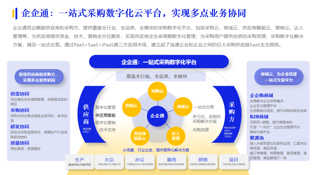 還有一采通,基于采購品類管理體系,打造了數(shù)智化采購平臺。