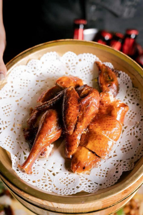 要說這里最出圈的菜品是什么,那一定是外酥里嫩的胡桃里烤雞。烤雞色澤似琥珀,又似棕紅,周身油亮亮的光澤勾引著食客。