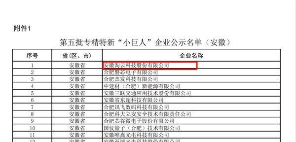 7月21日,工業(yè)和信息化部開展的第五批專精特新“小巨人”企業(yè)公示結(jié)束。安徽淘云科技股份有限公司(后稱“淘云科技”)憑借企業(yè)在專業(yè)、精細、特色、創(chuàng)新等核心競爭力領域的出眾表現(xiàn),從眾多參選企業(yè)中脫穎而出,成功獲得第五批國家級專精特新“小巨人”的認定!