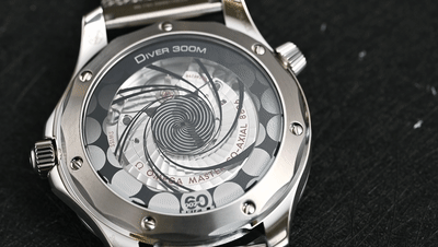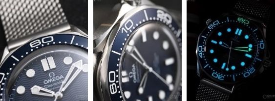 海馬300米“詹姆斯·邦德60周年紀(jì)念款”腕表的盤面,使用激光雕刻的波紋圖案,這一造型和上世紀(jì)90年代的早期海馬300米腕表保持一致,但取消了日歷。需要注意的是,新款腕表的秒針使用了“棒棒糖”秒針,其在歐米茄古董腕表中經(jīng)常出現(xiàn),是歐米茄復(fù)古風(fēng)格的一個特征。在售的海馬300腕表和2015年的《007:幽靈黨》中,詹姆斯·邦德佩戴的歐米茄海馬300腕表(注意:海馬300和海馬300米不是同一枚腕表)中同樣帶有罕見的“棒棒糖”秒針。
