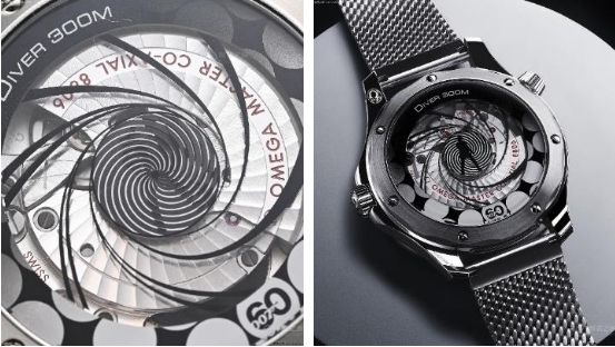 一只歐米茄海馬系列300米腕表居然在機(jī)芯上做出“動態(tài)畫面”,這是“活動人偶”嗎?當(dāng)然不是。這一標(biāo)志性的電影鏡頭采用微結(jié)構(gòu)金屬鍍層制成,并在藍(lán)寶石玻璃表背之下呈現(xiàn)出動態(tài)效果。歐米茄在機(jī)芯底部,巧妙地使用一個轉(zhuǎn)動的鋁盤,在鋁盤上,有4幀人物畫面,以及黑白相間的螺旋。鋁盤通過秒針帶動旋轉(zhuǎn),旋轉(zhuǎn)起來后,4幀人物畫面,連續(xù)起來,就有動態(tài)效果了。手表秒針一直走,動畫效果就會不停播放,周而復(fù)始。