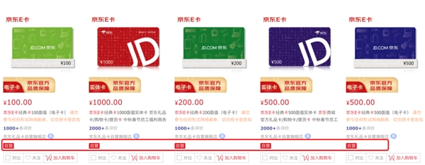 這里再叮囑一句,京東E卡有實(shí)體卡與電子卡之分,商品頁(yè)面會(huì)有相關(guān)標(biāo)識(shí),購(gòu)買時(shí)務(wù)必認(rèn)準(zhǔn),以免帶來(lái)不便。