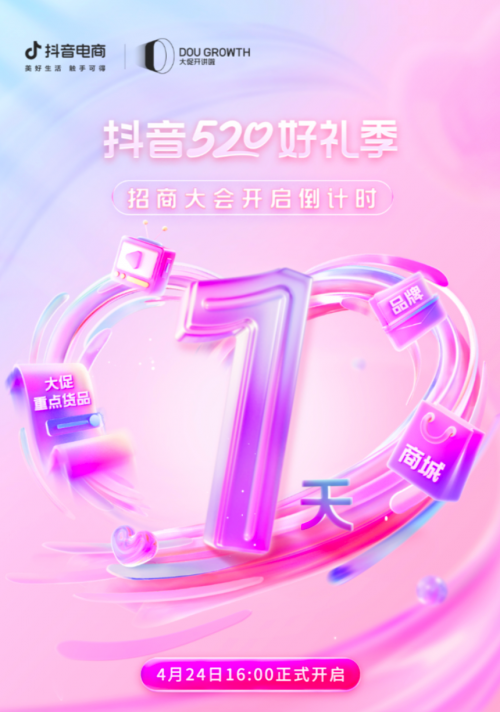 為給商家提前蓄勢(shì)520,擴(kuò)寬商家經(jīng)營(yíng)生意場(chǎng),「抖音520好禮季」招商大會(huì)將于4月24日16點(diǎn)正式召開(kāi),屆時(shí)將為商家披露全域億級(jí)流量扶持權(quán)益,詳細(xì)解讀貨架與內(nèi)容場(chǎng)景參與方法,助推商家借助營(yíng)銷(xiāo)節(jié)點(diǎn),實(shí)現(xiàn)全域生意爆發(fā)。