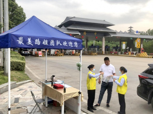 收費廣場的便民服務(wù)臺前,桌子上擺滿了高速地圖、住宿推薦、旅游攻略等各式各樣的宣傳手冊,緊急醫(yī)藥箱、簡易維修工具等一應(yīng)俱全?!澳銈兪召M站附近有修車的嗎?我的車半路出了點問題,現(xiàn)在得趕緊找個修車的地方?!币晃粍傁碌赖呢涇囁緳C搖下車窗,焦急地詢問道?!澳葎e著急,右邊大概100米左右就有一家汽修店,不遠的。天熱了給您拿瓶水喝,解解渴?!敝驹刚咭贿吇貞?yīng)著,一邊為司機送上了礦泉水?!艾F(xiàn)在出發(fā)去武漢的話,路上堵車嗎?”帶著一家人準備回家的王師傅咨詢道?!澳梢躁P(guān)注‘湖北e出行’微信公眾號,上面有實時路況信息,以后開車的時候都用得上?!睋乃緳C操作不熟練,志愿者還手把手地進行了演示?!澳銈冞@有地圖嗎?”“有開水嗎?”“有沒有多余的口罩啊?”……一張張燦爛的笑臉,一次次悉心的解答,志愿者們用真誠和真心,化作了高速路口最靚麗的風(fēng)景。