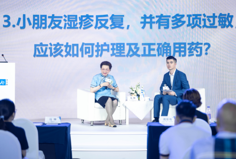 馬琳教授現(xiàn)場答疑左:北京兒童醫(yī)院皮膚科名譽主任馬琳教授;右:適樂膚(中國)醫(yī)學(xué)經(jīng)理艾云飛先生