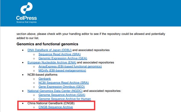 近日,國家基因庫序列歸檔系統(tǒng)(CNSA)被Cell Press(細胞出版社)推薦為基因組學和功能基因組學數(shù)據(jù)存儲庫。