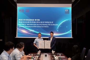 7月10日,國內(nèi)商用車首張UN ECE R155&ECE R156車型VTA證書頒證儀式在比亞迪總部舉行。比亞迪繼獲得商用車第一張ISO/SAE 21434網(wǎng)絡(luò)安全管理流程證書、R155 網(wǎng)絡(luò)安全管理體系(CSMS)以及R156軟件升級管理體系(SUMS)體系證書后,又率先獲得R155網(wǎng)絡(luò)安全及R156軟件升級車型認(rèn)證(VTA)證書。