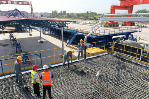 4月30日上午,由中鐵上海工程局承建的巢馬城際鐵路5標(biāo)馬鞍山制梁場首孔箱梁順利完成澆筑,標(biāo)志著該梁場正式進(jìn)入試生產(chǎn)階段,為巢馬城際鐵路如期實現(xiàn)通車目標(biāo)打下了堅實基礎(chǔ)。