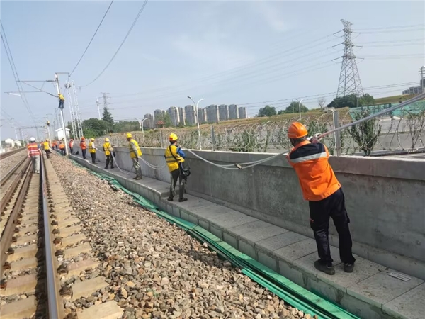 隨著作業(yè)人員默契配合下,起錨、放線、滑輪懸掛固定、落錨等各個工序有序推進(jìn),中國中鐵電氣化局運(yùn)管公司上海維管處合肥維管段橫跨包公大道供電線恢復(fù)架設(shè),標(biāo)志著淮南線接觸網(wǎng)遷改施工進(jìn)入最后階段。