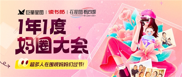 今年母親節(jié),「在星圖看四季」IP攜手讀書(shū)郎、YeeHoO英氏洗護(hù)、兔頭媽媽、惠氏啟斌等眾多品牌,聯(lián)合打造母親節(jié)話題活動(dòng)——# 一年一度 媽圈大會(huì)