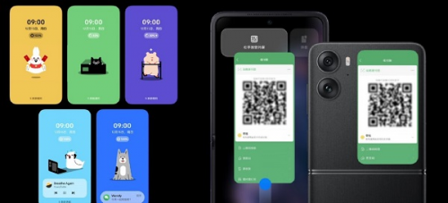 OPPO Find N2 Flip外屏寵物則是卡通版,也很可愛,應(yīng)用雙屏同開的功能很出彩,一邊用內(nèi)屏回消息,一邊展示外屏二維碼進行掃碼,太方便了。
