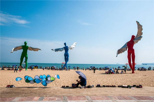 傳聞設(shè)計團隊來此踩點時,蹦到腦海中的詞匯就是“守護愿望”“許愿”。面對碧海藍天、金色沙灘,藝術(shù)家們產(chǎn)生守護愿望的強烈心里感受。學(xué)生時代的夢想、為愛情許下的甜蜜愿望、奮斗征程的豪情壯志等零碎畫面,在內(nèi)心不斷閃回。藝術(shù)家用敏銳的感受,建造了愿望塔和守護愿望的七個天使。七個天使象征著自由、包容、勇氣、和平、智慧等,鼓勵年輕人勇敢追求夢想,追逐幸福生活,實現(xiàn)愿望。