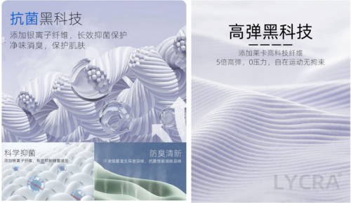更系統(tǒng)來講,VOVOS 的“黑科技”大概有以下幾點(diǎn):① 無痕工藝:運(yùn)用德國漢高膠水,良好的粘接強(qiáng)度和耐熱性支撐性強(qiáng),貼合無痕。② 萊卡面料:極大提高面料的彈性和延展性,與其他纖維對比伸展度可以達(dá)到500%。貼合人體,束縛力小。除此之外,銀離子、石墨烯面料和涼感紗織等科技也能著重提升抗菌、透氣與涼感和防紫外線等功能。