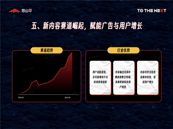 面對(duì)行業(yè)DAU增長放緩、整體市場(chǎng)預(yù)算下行的現(xiàn)狀,穿山甲視聽內(nèi)容行業(yè)持續(xù)推行傳統(tǒng)賽道的精細(xì)化運(yùn)營能力、并探索新賽道突破創(chuàng)新,實(shí)現(xiàn)40%+的逆勢(shì)上漲。