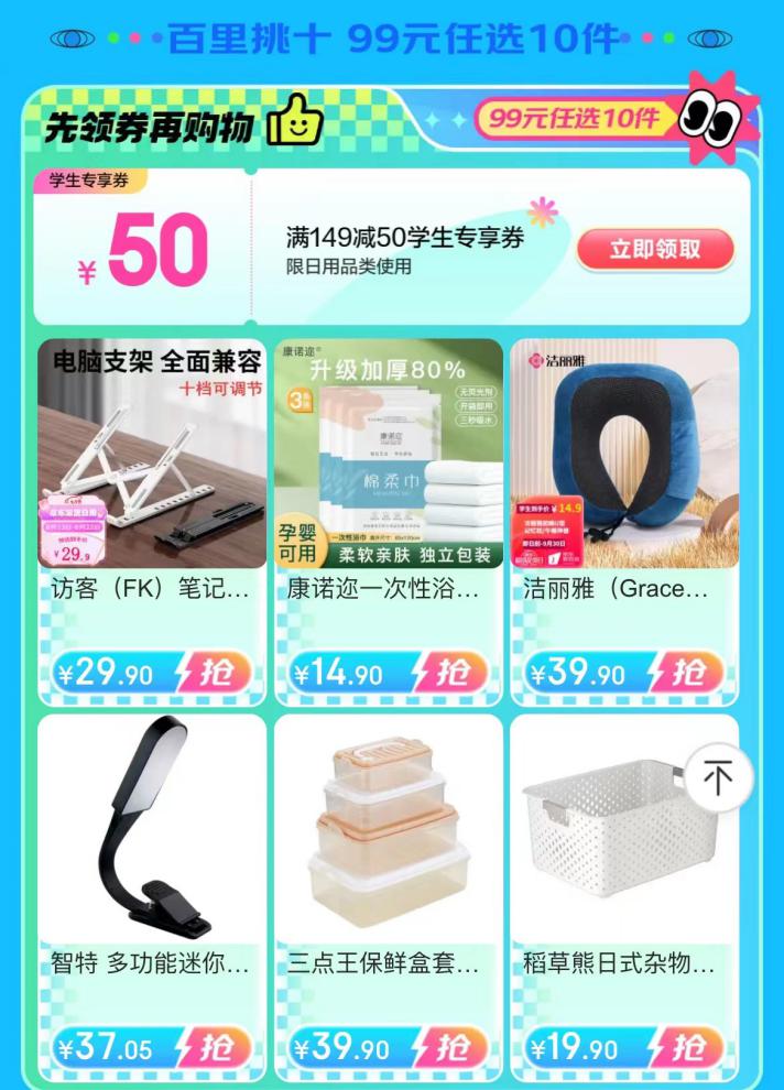 為了讓學(xué)生們省錢煥新,京東開(kāi)學(xué)季特設(shè)“百里挑十 ”專區(qū),雜物收納籃、筆記本電腦支架、泡腳盆、毛巾、水果刀、除螨噴霧等剛需好物99元任選10件,更有搬家打包收納袋、真空壓縮包、抽屜式桌面收納盒、衣服收納筐等海量商品享低至5折的學(xué)生折扣,為學(xué)生們帶來(lái)超值優(yōu)惠。