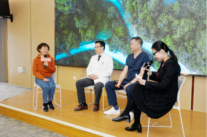 其中的芙蓉女士從四川遠(yuǎn)道而來,與兩位醫(yī)學(xué)大咖和主持人圍坐在一起,現(xiàn)場(chǎng)分享了自己患病以來的心路歷程和診療經(jīng)過,共同探討了內(nèi)(科)外(科)兼修實(shí)現(xiàn)長(zhǎng)期生存之道的經(jīng)驗(yàn)與思路等話題。