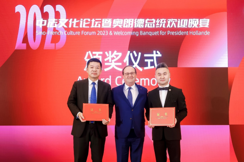 4月28日,由中國(guó)未來(lái)研究會(huì)一帶一路專業(yè)委員會(huì)主辦,北京國(guó)宏經(jīng)濟(jì)文化發(fā)展研究院承辦的2023中法文化論壇暨奧朗德總統(tǒng)歡迎晚宴在澳門舉行。熱烈祝賀GEMCORé珈蔻榮膺“法國(guó)對(duì)外友好交流榮譽(yù)品牌”殊榮!熱烈祝賀法國(guó)珈蔻國(guó)際公司CEO楊建國(guó)榮獲“中法友好交流大使”!歡迎晚宴上,奧朗德總統(tǒng)給法國(guó)珈蔻國(guó)際公司頒發(fā)了榮譽(yù)證書。
