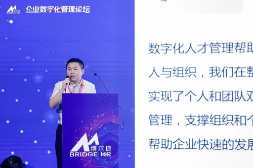 侯博士以2019年與中歐國(guó)際工商學(xué)院的忻榕教授、阿里巴巴產(chǎn)業(yè)互聯(lián)網(wǎng)中心主任陳威如教授歷經(jīng)兩年共同創(chuàng)作的《平臺(tái)化管理》一書作為理論指導(dǎo),以及多年人力資源行業(yè)經(jīng)驗(yàn)的沉淀和敏銳的市場(chǎng)洞察,總結(jié)構(gòu)建平臺(tái)化企業(yè)的重要性,包括小前端、強(qiáng)中臺(tái)和穩(wěn)后臺(tái)的建設(shè)。侯博士介紹了平臺(tái)化管理的五化模型:能力數(shù)字化、關(guān)系數(shù)字化、績(jī)效顆?;⒔Y(jié)構(gòu)柔性化、以及文化利他化。侯博士分享了博爾捷集團(tuán)的成功經(jīng)驗(yàn),鼓勵(lì)其他企業(yè)在探索和實(shí)踐中進(jìn)行數(shù)字化轉(zhuǎn)型和組織變革,以實(shí)現(xiàn)平臺(tái)化管理。