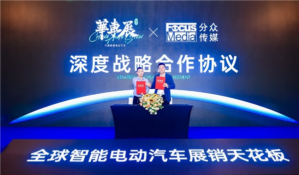 發(fā)布會(huì)現(xiàn)場(chǎng),還進(jìn)行了CAS華車展與分眾傳媒深度戰(zhàn)略合作簽約儀式,華墨集團(tuán)CEO王國平與分眾傳媒董事長江南春共同簽署了“助力全球智能電動(dòng)汽車品銷雙贏”戰(zhàn)略合作。