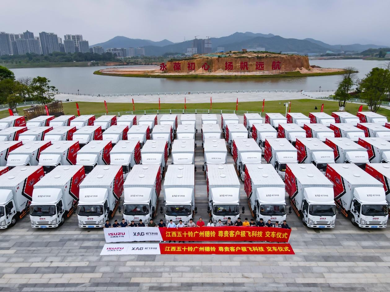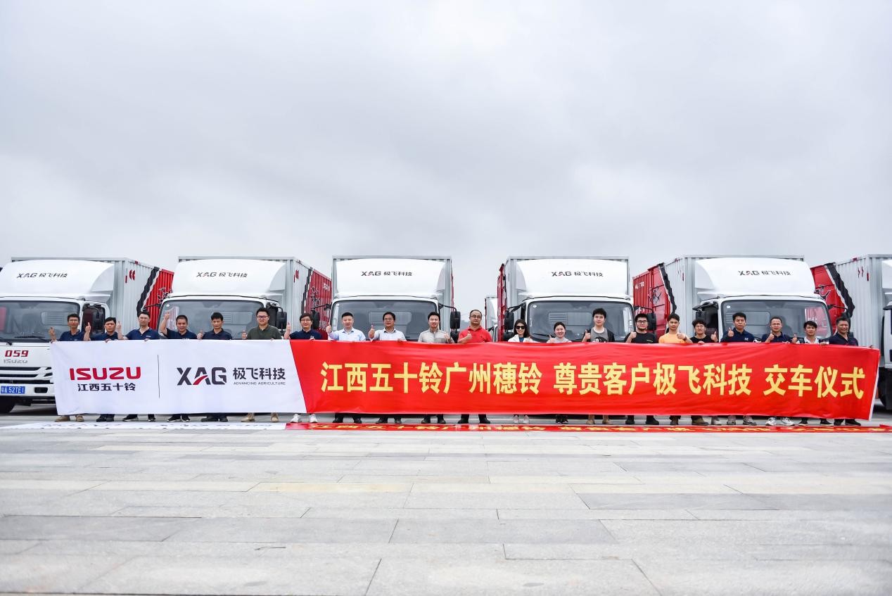 3月22日,隨著指揮人的一聲發(fā)號指令,112臺江西五十鈴翼放ES7從廣州中新知識城公園浩浩蕩蕩出發(fā),駛向它們的新家——極飛科技公司總部,踏上智慧農業(yè)的征途。