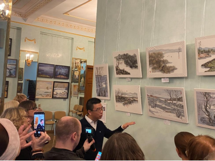 日前,由中俄人文合作發(fā)展中心和俄羅斯國家科學院文化藝術中心聯(lián)合主辦的“思考自然之美——劉子輿作品展”,正在莫斯科俄羅斯國家科學院文化藝術中心舉行,展期截止到4月5日。中國畫家劉子輿,受邀走進俄羅斯國家科學院“大師課堂”講授中國繪畫。據(jù)悉,本次展覽展出的是劉子輿近期創(chuàng)作的作品,即用中國水墨描繪了莫斯科的雪景、森林以及蜀葵、棉花、蒲公英、土豆、地黃等花卉。據(jù)悉,俄羅斯觀眾見到這些精彩的中國水墨作品,驚嘆不已,紛紛拍照留念。