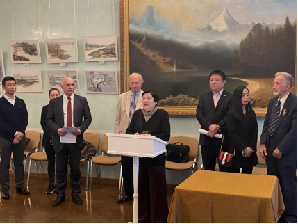 中俄人文合作發(fā)展中心理事長尹斌先生在發(fā)言中談到:“藝術家劉子輿先生在莫斯科生活多年,在此期間,他給很多俄羅斯人傳授中國的水墨,為發(fā)揚中國文化作出了巨大貢獻?!?/p>