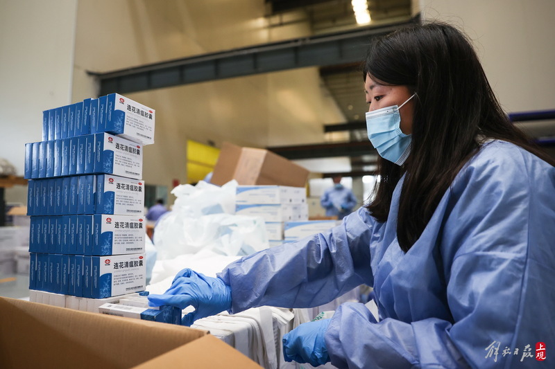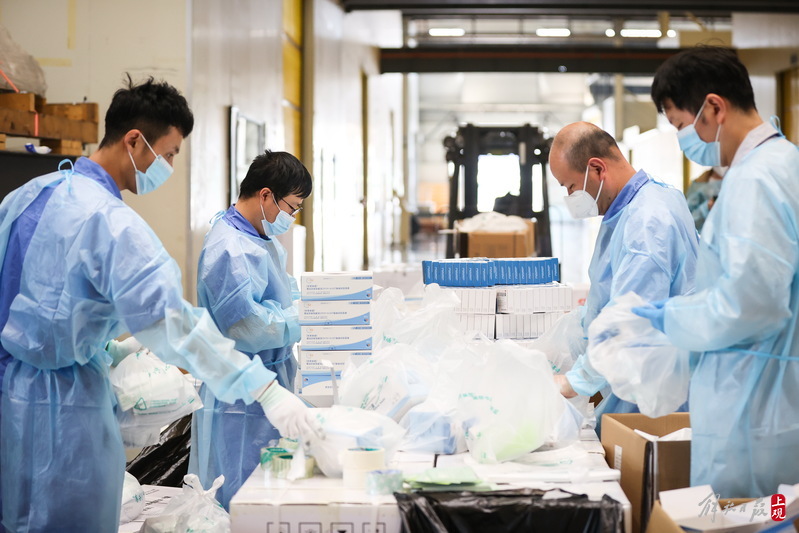 現(xiàn)場負(fù)責(zé)人楊東告訴記者:“我們是4月6日晚上接收到分裝任務(wù),目前累計(jì)打包送出8萬余份‘防疫服務(wù)包’,我們從早到晚能快一點(diǎn)就快一點(diǎn),就想著盡快把物資打包好送到居民手中。”