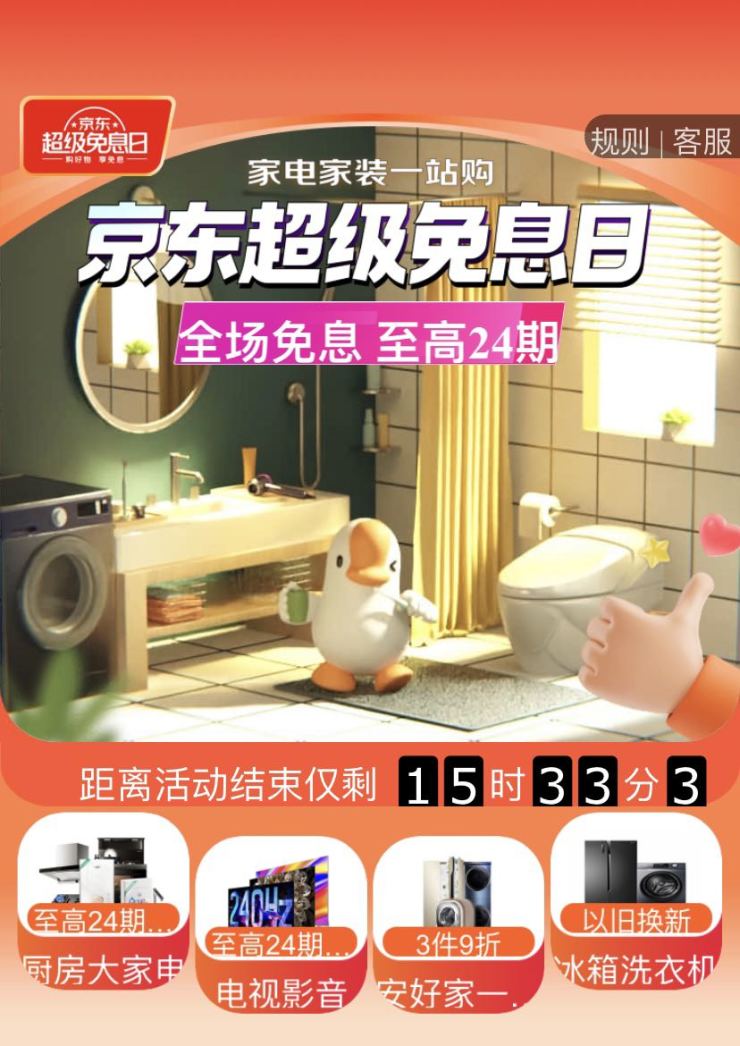 為了滿足消費者對場景化居家空間多元化、個性化的需求,京東家電與京東居家針對消費者配套化購買居家、家電產(chǎn)品,快捷實現(xiàn)不同空間場景完整配貨的訴求,在今年4月居家春季家裝節(jié)、家電家裝節(jié)期間,攜手打造“京東家電家裝一站購”,共同聚焦客廳、臥室、陽臺、衛(wèi)浴等多元生活空間樣板間,為消費者打造舒適、便捷的一站式空間解決方案。4月14日京東居家超級免息日,消費者還可享受全場免息、至高24期優(yōu)惠。
