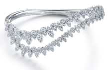 這款簡約的手鐲以富有彈性的18K金打造而成,兩行優(yōu)雅排列的鉆石交匯于中央,