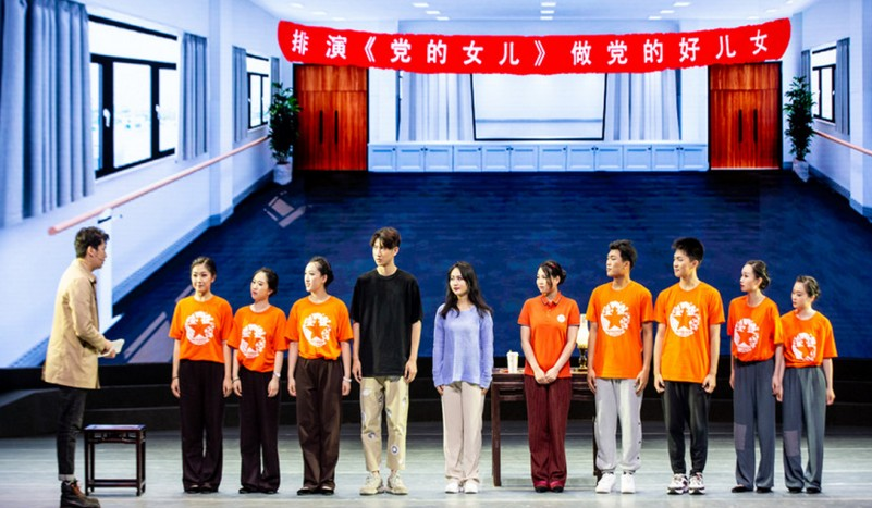 主題是“忠誠”的故事,取材自湖北師生親身經(jīng)歷,女主角桂英的扮演者何曉蓮在家鄉(xiāng)武漢經(jīng)歷抗疫洗禮,成為一名社區(qū)志愿者。從身邊的黨員志愿者和身為黨員的父母身上,她漸漸理解了什么是共產(chǎn)黨員的信念。這正是《2020好兒女》的故事主線。編劇周勝南說,“忠誠不僅僅是戲中戲的主角桂英等革命先輩對黨的忠誠,也是青年學子對祖國、對黨的忠誠?!薄饵h的女兒》是經(jīng)典民族歌劇,2001年以來,上海師范大學先后4次排演教師版、學生版、校園版民族歌劇《黨的女兒》,而《2020好兒女》的故事正是從大學生何曉蓮排演《黨的女兒》開始。劇中的人物經(jīng)歷均取材自上海師范大學師生的真實故事。何曉蓮的扮演者、上海師范大學音樂學院學生涂暢說:“隨著排演的不斷深入,我似乎總能感覺到有一股力量在引導(dǎo)著我往前行?!蓖醮蟪傻陌缪菡摺⑸虾煼洞髮W影視傳媒學院學生朱圣顥是第一次參演歌舞劇。他說:“在戲中一次次感受共產(chǎn)黨員的矢志不渝的堅定信仰?!鼻嗄暄輪T們紛紛表示,不僅要在舞臺上演好黨的好兒女,舞臺下更要做好新時代黨的好兒女。創(chuàng)排校園歌舞劇《2020好兒女》是上海師范大學發(fā)揮學科優(yōu)勢,創(chuàng)新黨史學習教育的方法載體,將黨史教育融入育人實踐。近300名演職人員每天進行大強度排練,放棄所有節(jié)假日,該劇除保留民族歌劇《黨的女兒》中《杜鵑花》等少量經(jīng)典唱段外,創(chuàng)作了大批原創(chuàng)音樂和舞蹈作品。其中包括《別樣武漢心慌亂》《青春耀神州》《共產(chǎn)黨員圖什么》《相約畢業(yè)季》《今天畢業(yè)》等5部歌曲和民族舞、現(xiàn)代舞等4部舞蹈作品,同時,改編原劇歌曲5部。該劇作曲申林表示,“在創(chuàng)作中學習,在創(chuàng)作中感動,是我創(chuàng)作歌舞劇音樂最深刻的感受。用音樂刻畫每個人物形象,是我洗滌心靈的過程?!?/p>