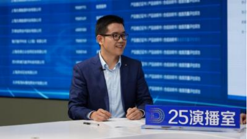 上海數(shù)據(jù)交易所演播室訪談現(xiàn)場(chǎng)。合合信息數(shù)據(jù)事業(yè)部副總經(jīng)理沈東輝