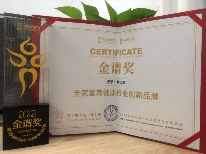 8月8日至9日,2022第十六屆中國品牌節(jié)年會(huì)在長沙盛大召開,“2022中國品牌金譜獎(jiǎng)”評(píng)選隨之新鮮出爐,暢億家榮獲“金譜獎(jiǎng)·全家營養(yǎng)健康行業(yè)創(chuàng)新品牌”,成為今年獨(dú)一上榜“金譜獎(jiǎng)”的大健康創(chuàng)新品牌。金譜獎(jiǎng)通過品牌行業(yè)地位、品牌購買力、品牌活躍度、消費(fèi)者影響力、品牌社會(huì)責(zé)任感等多項(xiàng)指數(shù)的綜合評(píng)選,評(píng)選行業(yè)年度表現(xiàn)最佳的品牌,每年評(píng)選1次。每行業(yè)入圍30強(qiáng),最后決出品牌中國金譜獎(jiǎng)榮譽(yù)。