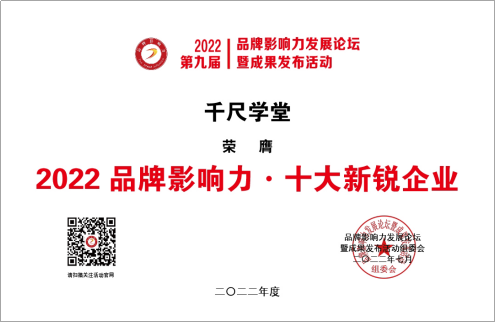 近日,由《發(fā)現(xiàn)品牌》欄目組、對(duì)外經(jīng)濟(jì)貿(mào)易大學(xué)中國(guó)國(guó)際品牌戰(zhàn)略研究中心、《中國(guó)企業(yè)報(bào)》集團(tuán)主辦的2022品牌影響力發(fā)展論壇暨成果發(fā)布活動(dòng)正式舉辦?;顒?dòng)以“大力發(fā)展品牌戰(zhàn)略促進(jìn)經(jīng)濟(jì)高質(zhì)量發(fā)展”為主題。圍繞中國(guó)品牌創(chuàng)建行動(dòng),培育新型消費(fèi),實(shí)施領(lǐng)航企業(yè)培育工程,促進(jìn)專(zhuān)精特新小巨人企業(yè)培育等內(nèi)容展開(kāi)分析探討。在著重推介具有優(yōu)秀成長(zhǎng)性或影響力的品牌環(huán)節(jié)中,千尺學(xué)堂榮膺“2022品牌影響力·十大新銳企業(yè)”、“2022品牌影響力·踐行社會(huì)責(zé)任十大典范”兩項(xiàng)大獎(jiǎng)。