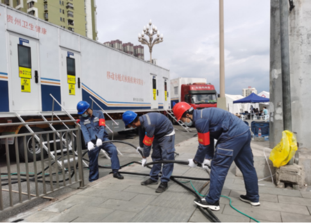 貴州電網(wǎng)于9月3日接到任務(wù)之時(shí),用30分鐘組建青年突擊隊(duì),10小時(shí)完成6臺(tái)綜合配電箱及360米低壓電纜接入,為11臺(tái)移動(dòng)方艙式核酸檢測(cè)實(shí)驗(yàn)室用電提供“雙保險(xiǎn)”;戰(zhàn)役打響后,多支青年突擊隊(duì)對(duì)將軍山醫(yī)院等32個(gè)疫情防控醫(yī)療機(jī)構(gòu)及筑城廣場(chǎng)、金陽奧林匹克體育中心、花溪大學(xué)城等48個(gè)核酸樣本集中檢測(cè)方艙實(shí)現(xiàn)拉線送電和全日現(xiàn)場(chǎng)值守。
