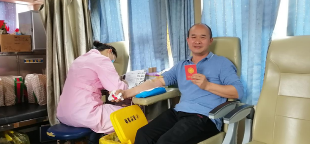 2020年疫情爆發(fā)以來,來賓市血站中心血液告急,得知消息后王洪主動召集員工參加無償獻(xiàn)血活動,自身血液各項(xiàng)指標(biāo)經(jīng)檢測合格后,年近50歲的他以身作則,挽起袖子第一個(gè)獻(xiàn)血。連續(xù)三年來,他個(gè)人共計(jì)捐獻(xiàn)了1200ML鮮血,員工52人次參與獻(xiàn)血,獻(xiàn)血量17500ML,以實(shí)實(shí)在在的行動為抗擊疫情傳遞愛的力量。