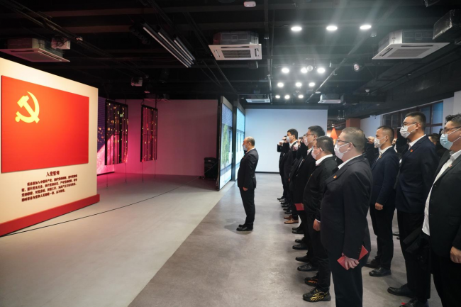 在中共蘇州獨(dú)立支部舊址,黨員們走過(guò)“燃血青春”中共蘇州獨(dú)立支部史跡陳列展示區(qū)、“青春我行”實(shí)踐活動(dòng)體驗(yàn)區(qū)、“青春劇場(chǎng)”多功能廳,通過(guò)聆聽(tīng)革命先烈的光輝事跡、沉浸式體驗(yàn)革命年代的艱苦歷程,系統(tǒng)回顧了中共蘇州獨(dú)立支部的創(chuàng)建背景、發(fā)展過(guò)程及影響意義,深刻感悟中共蘇州獨(dú)立支部的發(fā)展史、革命史和奮斗史,在恢宏磅礴的歷史畫(huà)卷中感悟著共產(chǎn)黨人堅(jiān)定的理想信念。隨后,在“青春誓言”宣誓區(qū),全體黨員在牛春雷的帶領(lǐng)下面對(duì)黨旗莊重宣誓,重溫入黨誓詞,切實(shí)用紅色文化滋養(yǎng)初心、淬煉品行。