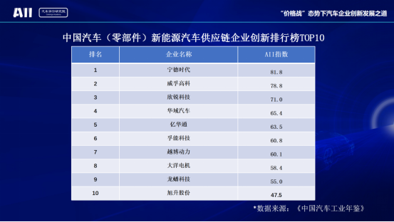 中國(guó)汽車(chē)(零部件)新能源汽車(chē)供應(yīng)鏈企業(yè)創(chuàng)新排行榜TOP10