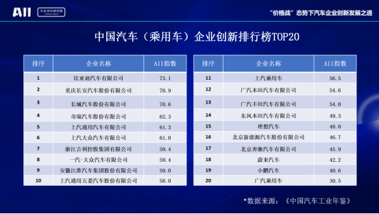 中國(guó)汽車(chē)(乘用車(chē))企業(yè)創(chuàng)新排行榜TOP20