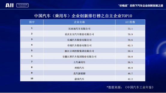 中國(guó)汽車(chē)(乘用車(chē))企業(yè)創(chuàng)新排行榜之自主企業(yè)TOP10
