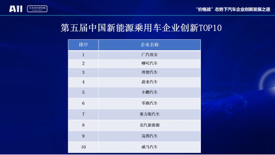 中國(guó)新能源乘用車(chē)企業(yè)創(chuàng)新TOP10