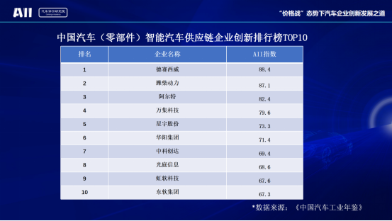 中國(guó)汽車(chē)(零部件)智能汽車(chē)供應(yīng)鏈企業(yè)創(chuàng)新排行榜TOP10