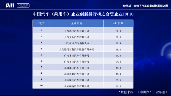 中國(guó)汽車(chē)(乘用車(chē))企業(yè)創(chuàng)新排行榜之合資企業(yè)TOP10