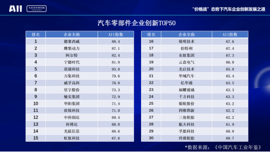 中國(guó)汽車(chē)(零部件)企業(yè)創(chuàng)新TOP50