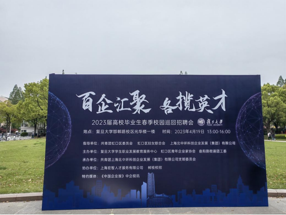 4月19日,共青團(tuán)虹口區(qū)委員會(huì)、虹口區(qū)婦女聯(lián)合會(huì)攜手上海北中環(huán)科創(chuàng)企業(yè)發(fā)展(集團(tuán))有限公司,于復(fù)旦大學(xué)邯鄲路校區(qū)光華樓一樓,共同舉辦“百企匯聚,各攬英才”2023屆高校畢業(yè)生春季校園巡回招聘會(huì)。