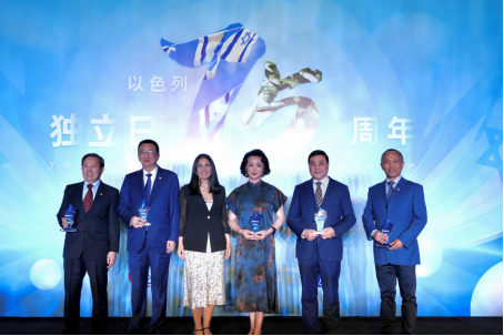 活動現(xiàn)場,上海兒童醫(yī)學(xué)中心SDR手術(shù)中心主任肖波獲得“促進(jìn)中以醫(yī)療技術(shù)交流”杰出貢獻(xiàn)獎(jiǎng),上海猶太難民紀(jì)念館館長陳儉獲得“致力于上海猶太歷史保護(hù)”杰出貢獻(xiàn)獎(jiǎng),上海金星舞蹈團(tuán)藝術(shù)總監(jiān)金星獲得“促進(jìn)中以藝術(shù)文化交流”杰出貢獻(xiàn)獎(jiǎng),上海鉆石交易所總裁林強(qiáng)獲得“促進(jìn)中以商貿(mào)與文化交流”杰出貢獻(xiàn)獎(jiǎng),南京大學(xué)猶太文化研究所所長徐新獲得“致力于猶太文化研究與中以教育交流”杰出貢獻(xiàn)獎(jiǎng),白樂濰為獲獎(jiǎng)嘉賓頒獎(jiǎng)。這也是以色列總領(lǐng)事館建館以來,首次向中國人授予此榮譽(yù)。
