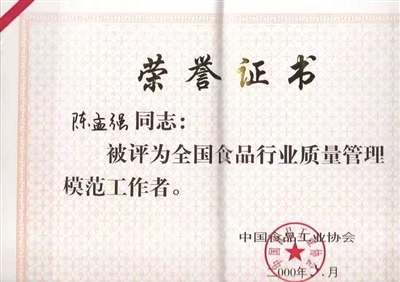 1987年,陳孟強(qiáng)參與起草了《保國際金牌奪國際金獎(jiǎng)》的專題報(bào)告,并在全國輕工行業(yè)工作會(huì)議上進(jìn)行了匯報(bào)。